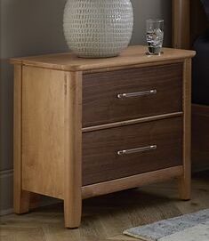 The Two Drawer Nightstand blends modern design with classic craftsmanship. Made from solid maple with walnut veneers; it features a sleek profile that highlights the wood grain and layered veneers for added visual appeal.